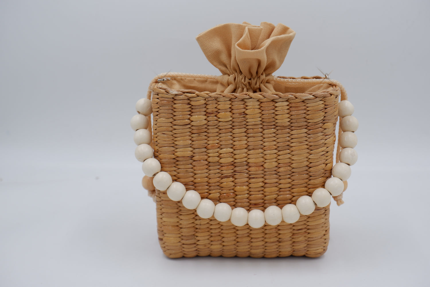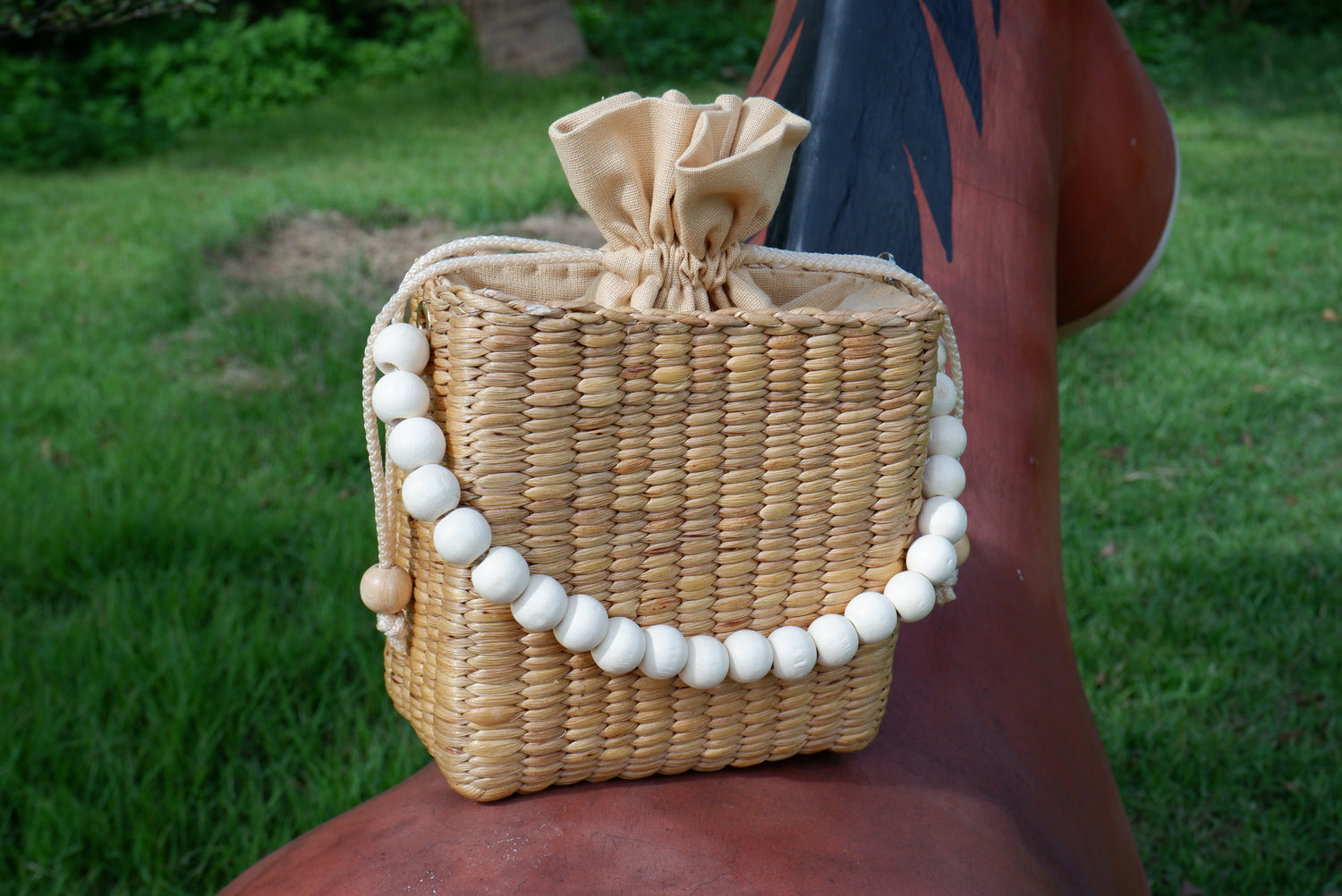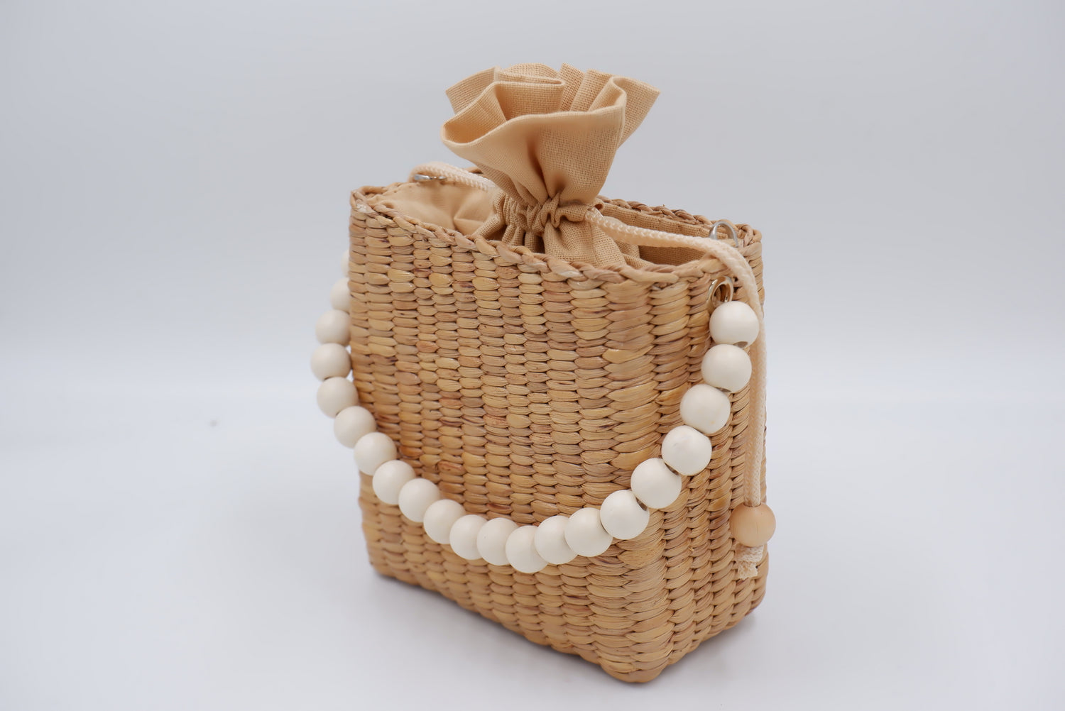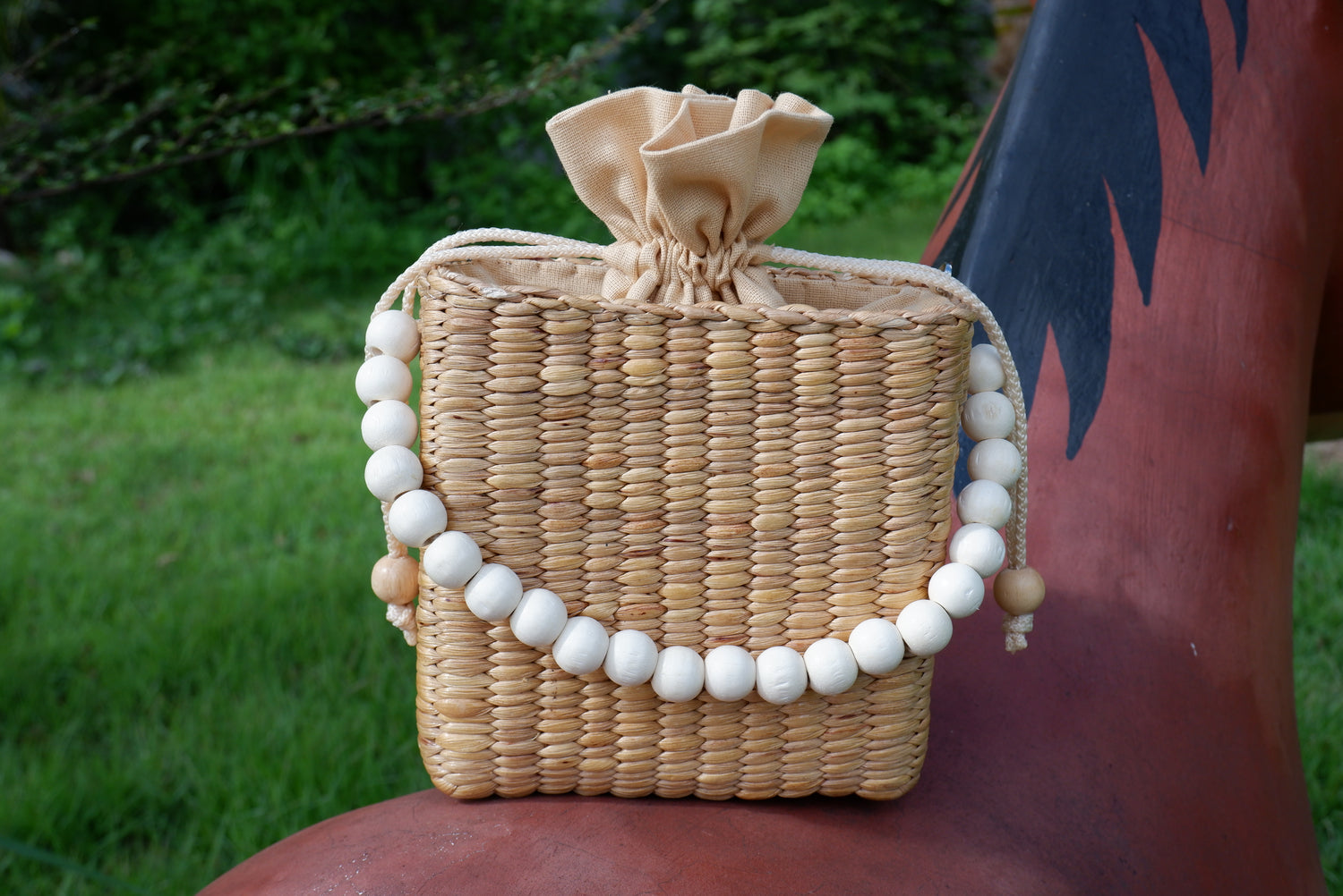 Beautifully handmade water hyacinth bag with Wooden bead handle and inside cotton bag.