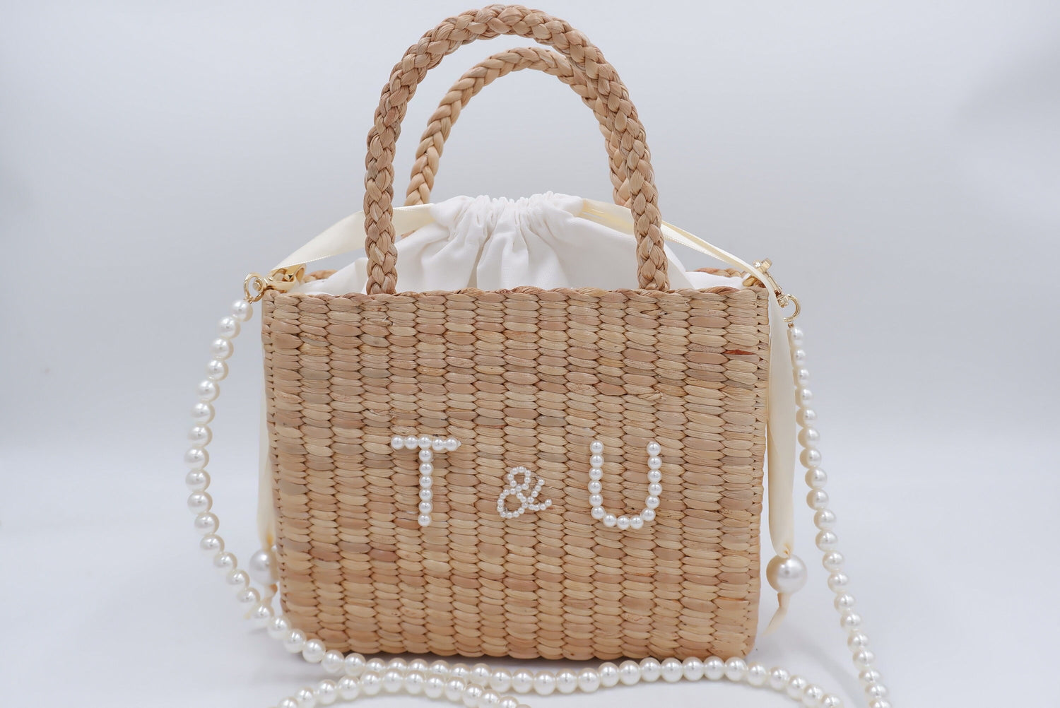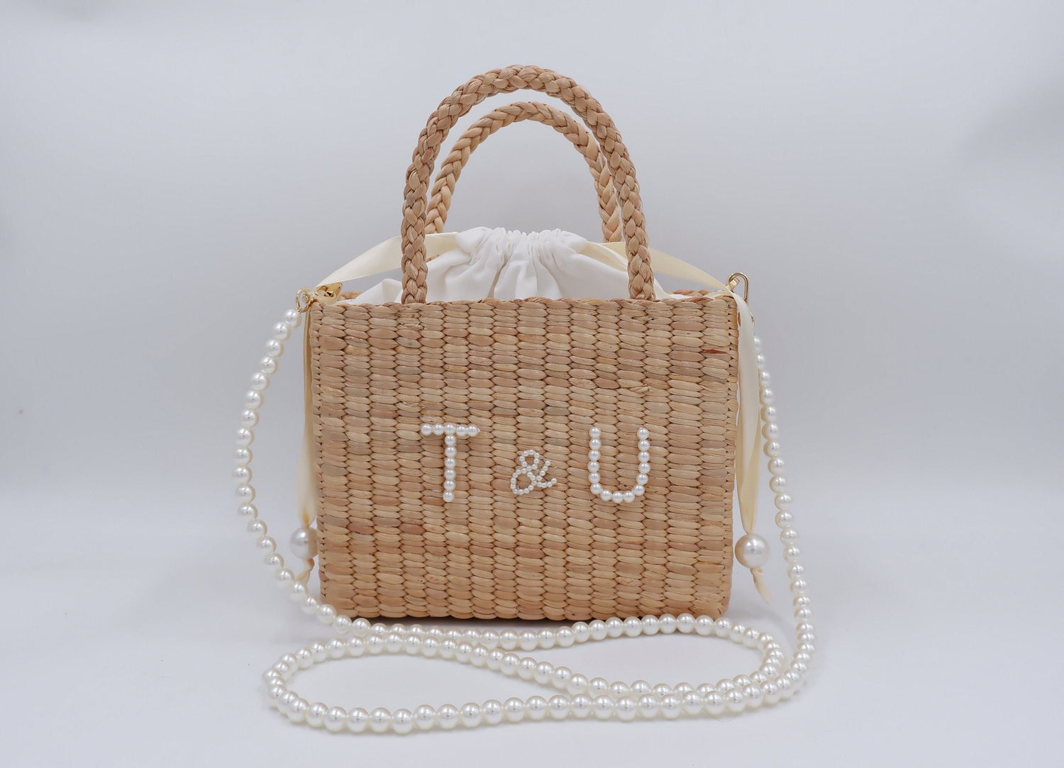Bride pearl bag Bride bag Personalized Bride Pearl Straw Shoulder Bag