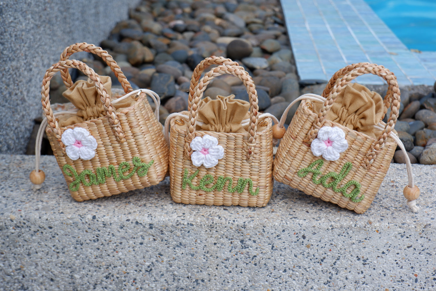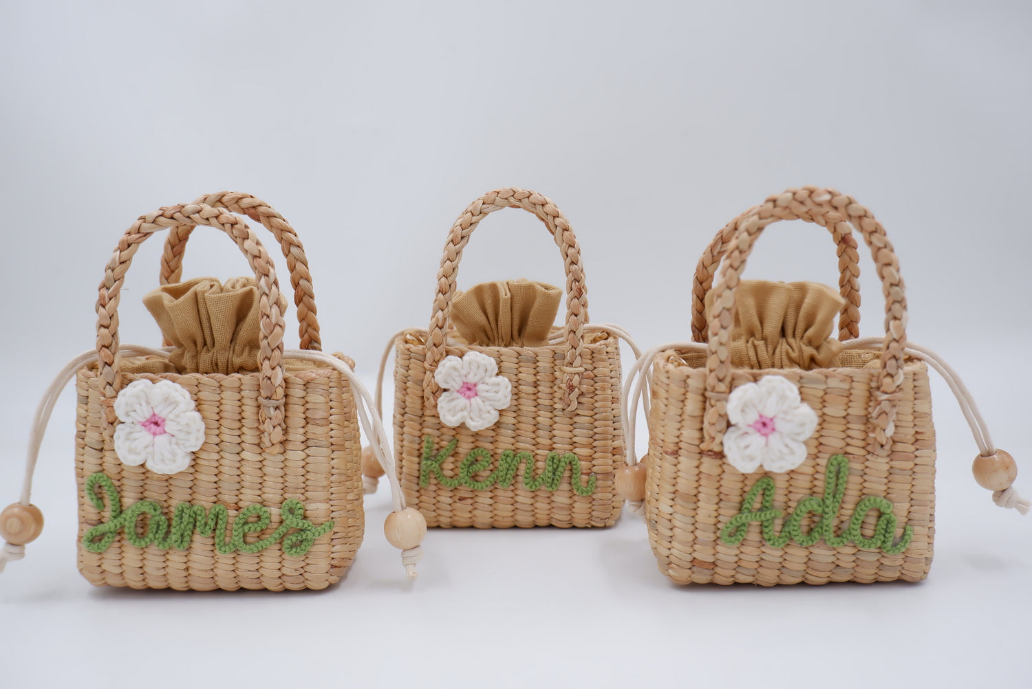 flower girl gift, gift for girl, monogram kids bag, girl straw purse