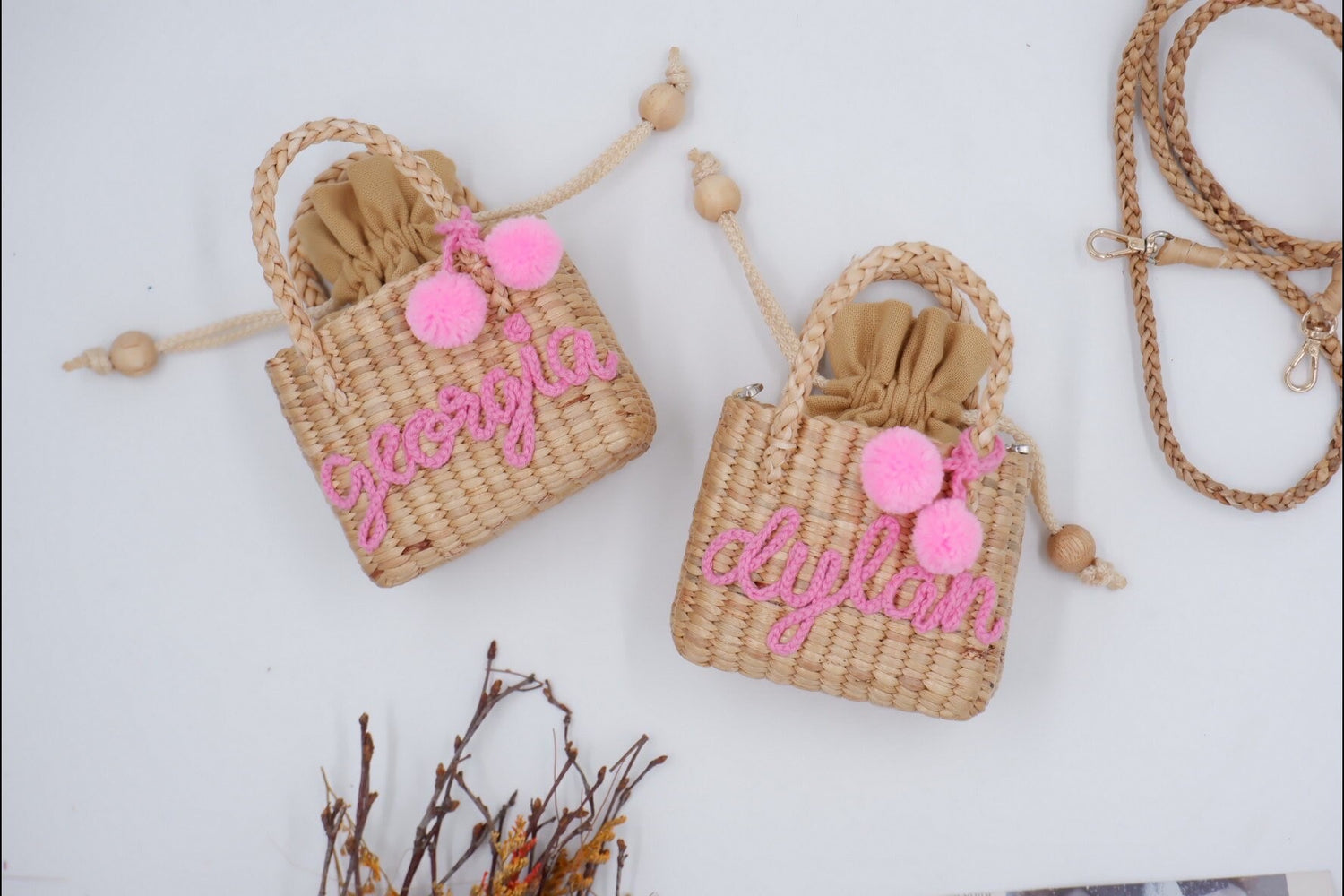 Personalized Bag, Kids bag, Pom Pom Clutch, Little Girl Purse, Girls Purse, Personalized Purse, Girl Birthday Gift, Girls Trip Bag