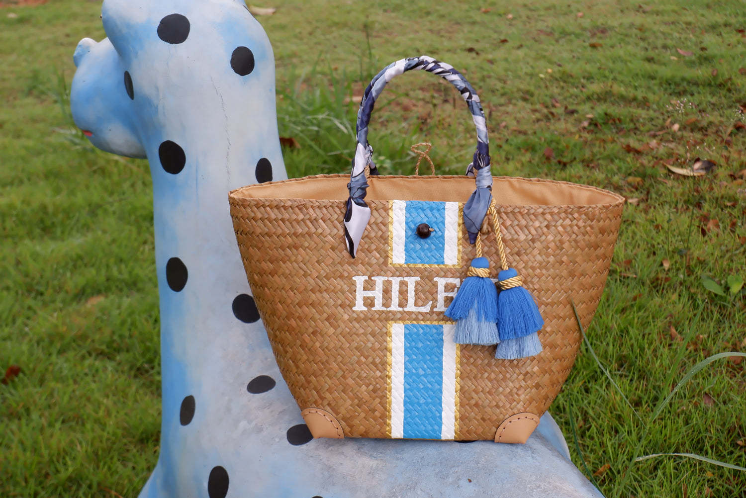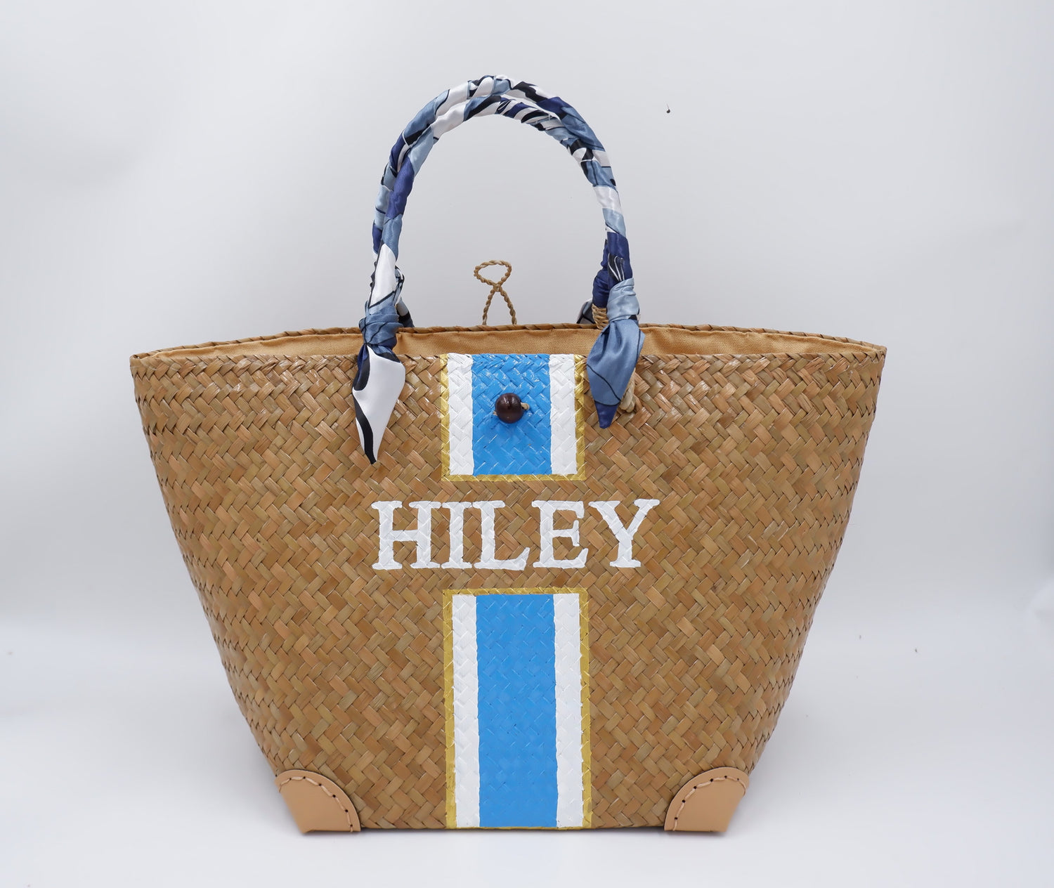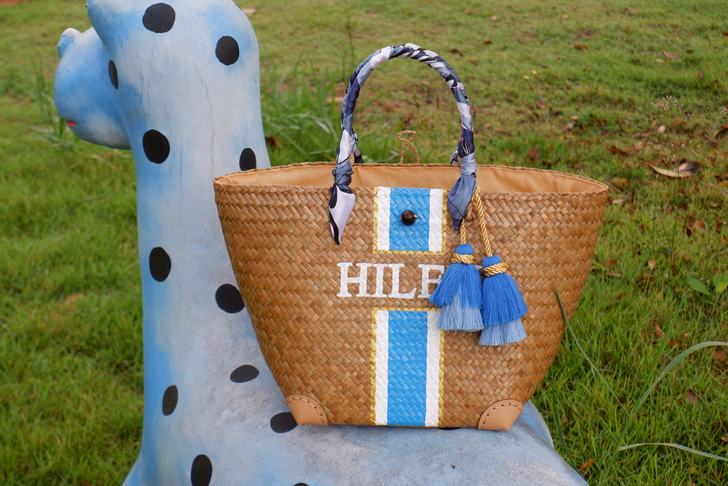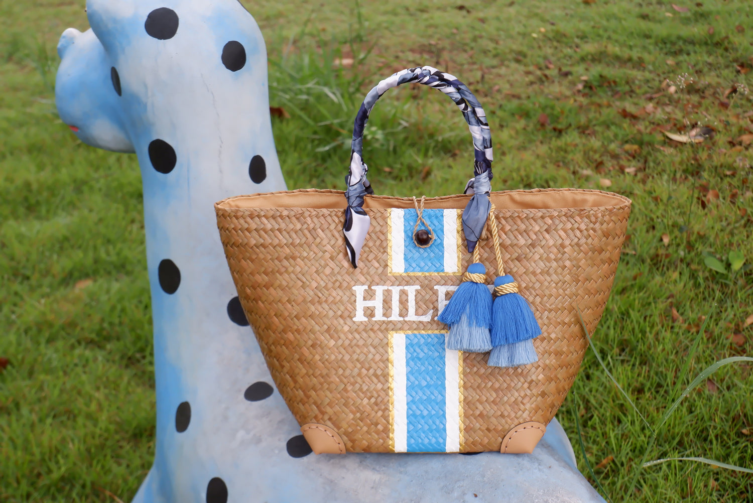 This straw beach bag is Personalized order and handwoven in the thailand from Sedge