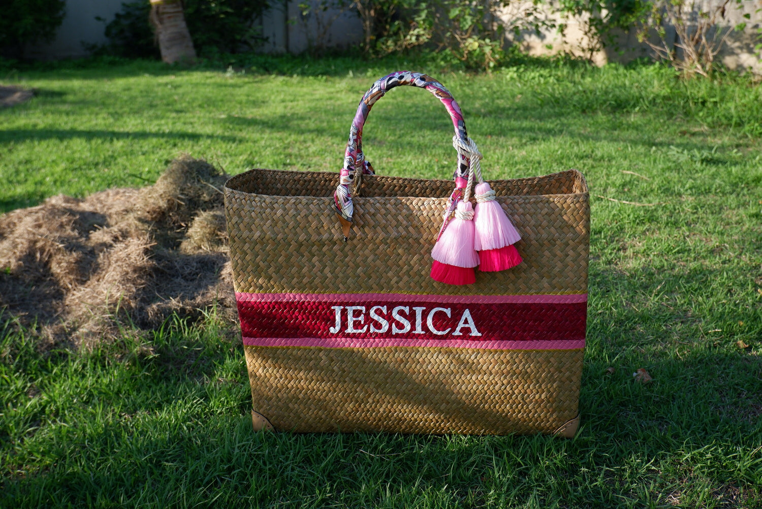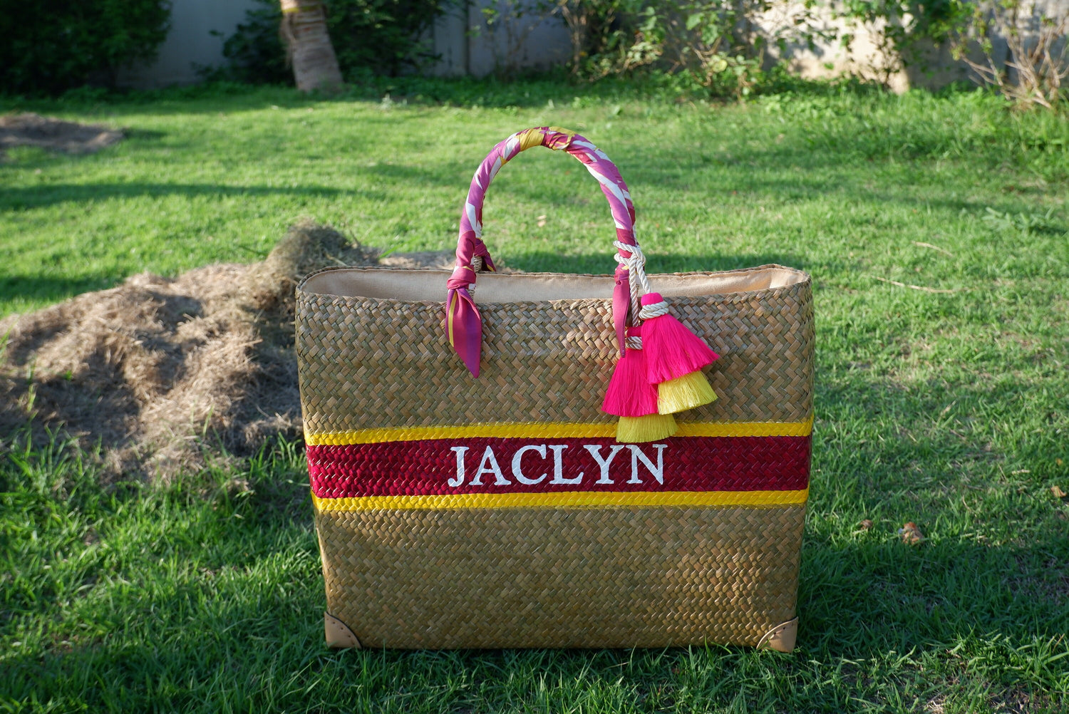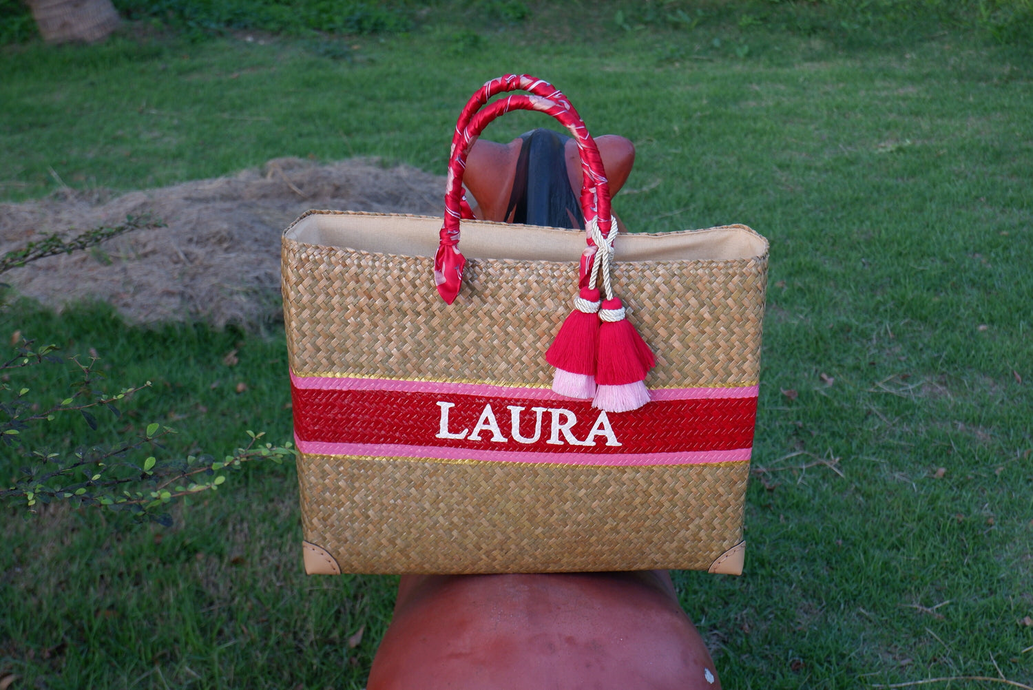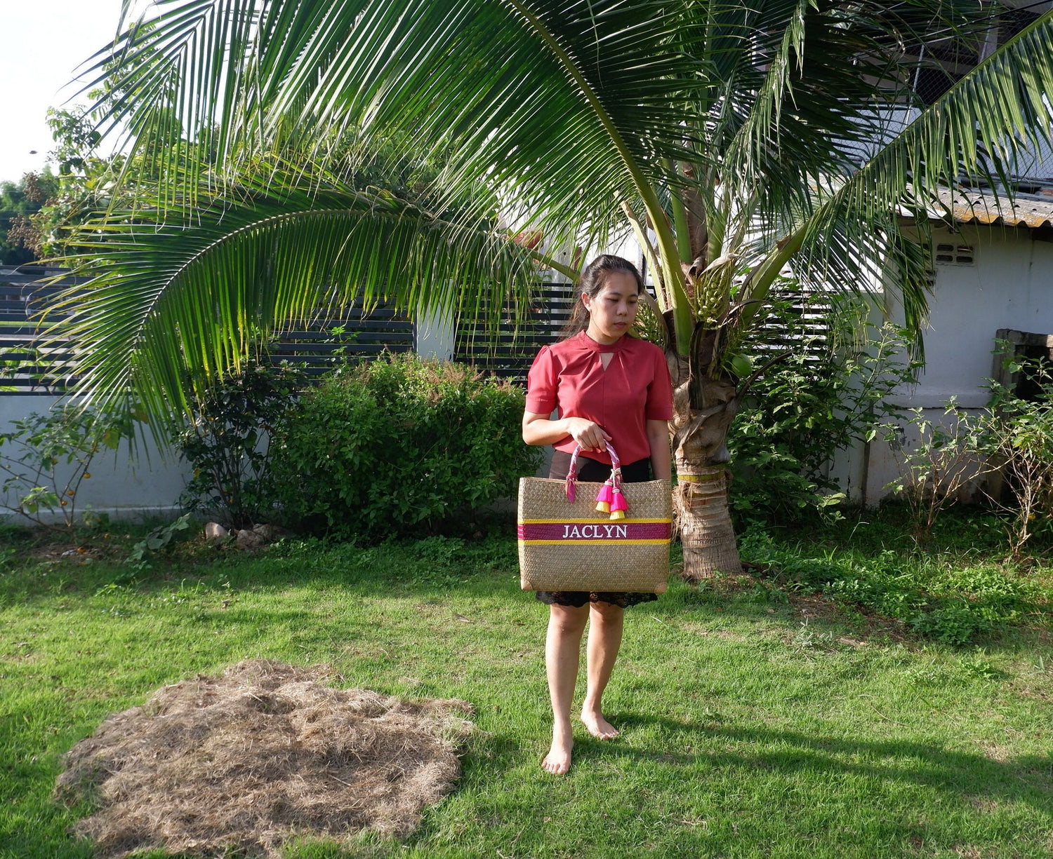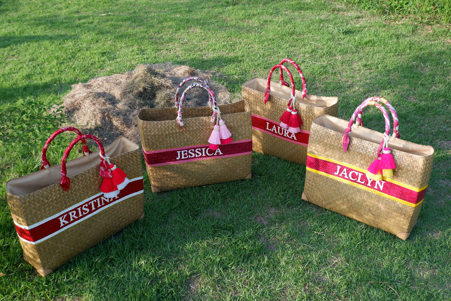 This straw is Personalized order and handwoven in the thailand for Bridesmaid Gift Wedding Party, Shopping Beach.