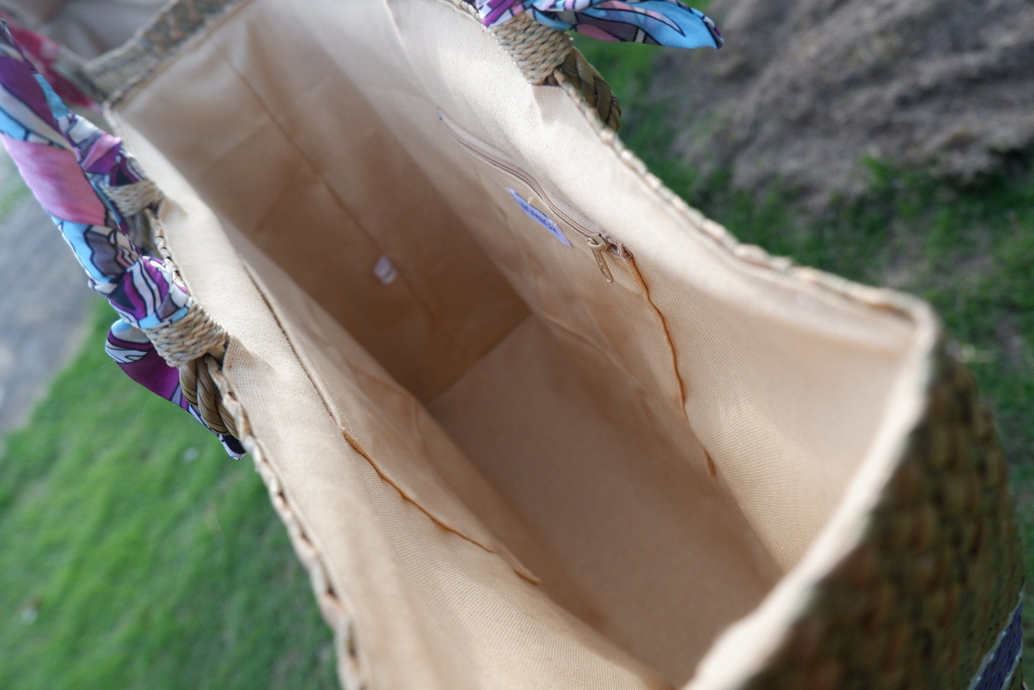 -Cream lining with zipper