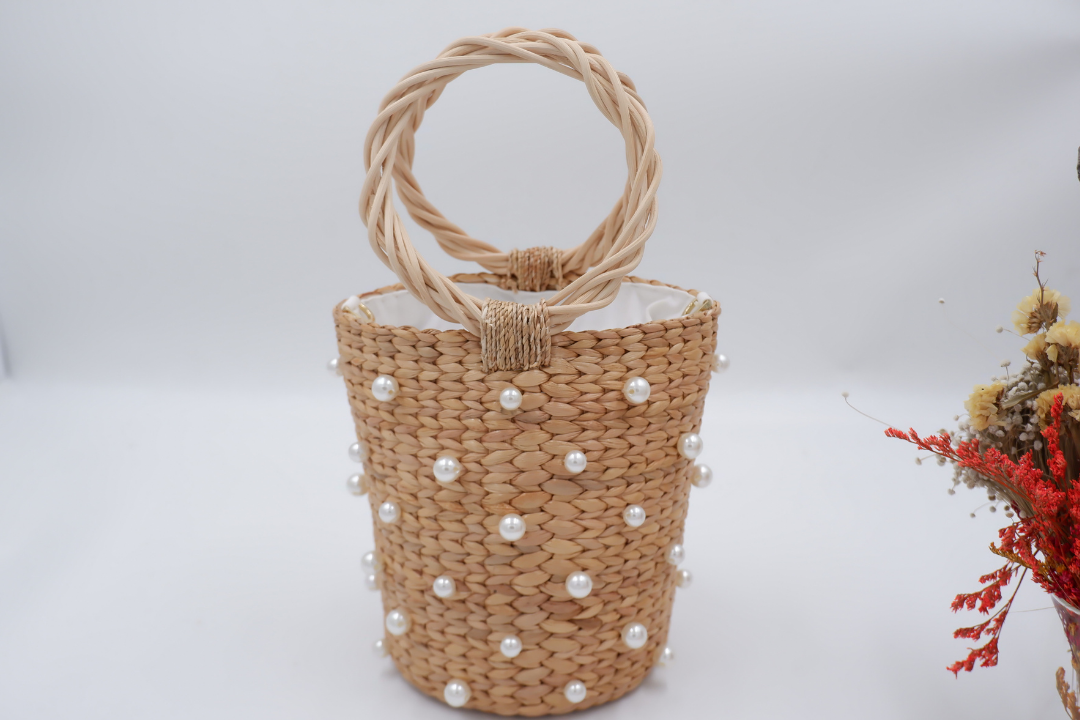 - Decorated with Faux pearl around the bag.
