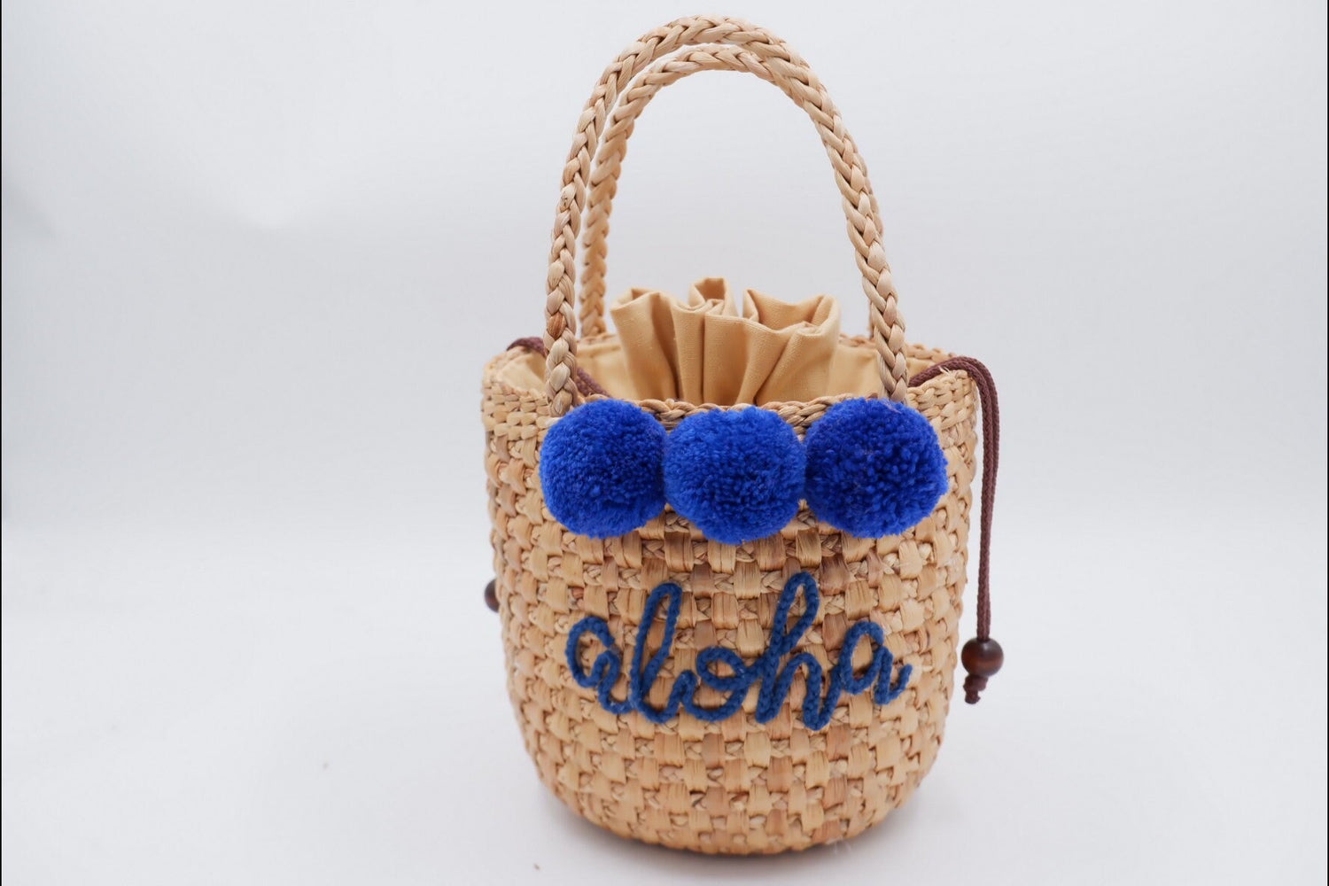 Pompom bucket bag is 100% handcrafted by local Thailand artists, from a water hyacinth.