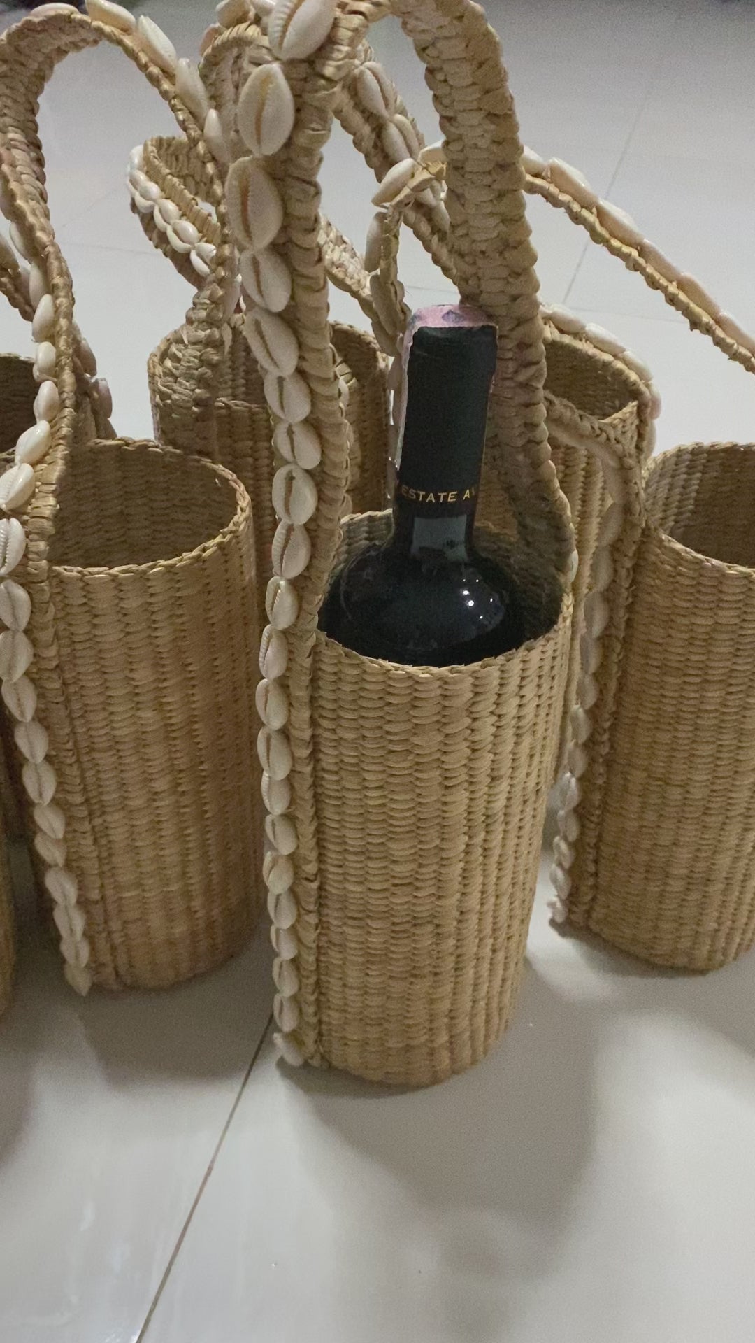 wine bottle holder with shell Wine Holder With Handle, Wine Holder Woven Bag, Water Bottle Bag, Boho Gift Idea, Wine Accessory, wine bottle holder, Wine Bag, Wine Holder